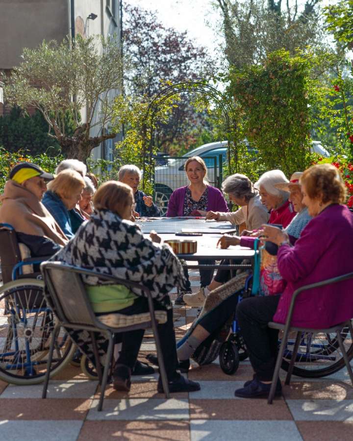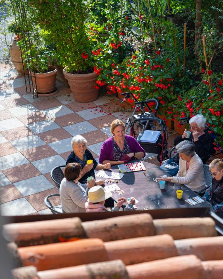 Comfort come in hotel, ascensore al piano, bagno in camera, cucina curatissima, patio e giardino, animazione e relax, personale selezionato, assistenza infermieristica e medica,